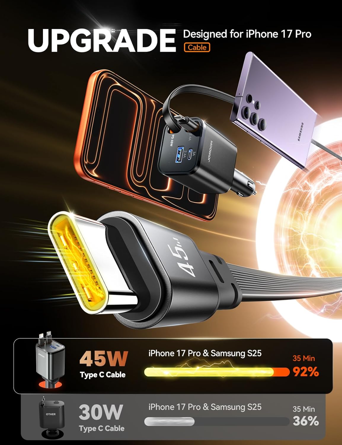 Upgrade PD 45W Retractable USB C Cable fast charging for all usb c devices like for iPhone 17 / iPhone 17 Air / iPhone 17 Pro / iPhone 17 Pro Max