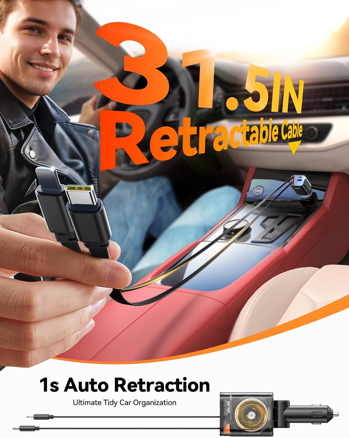 84W Retractable iPhone 17 Car Charger Fast Charging(5.11 x 1.77 x 1.49 inches)
