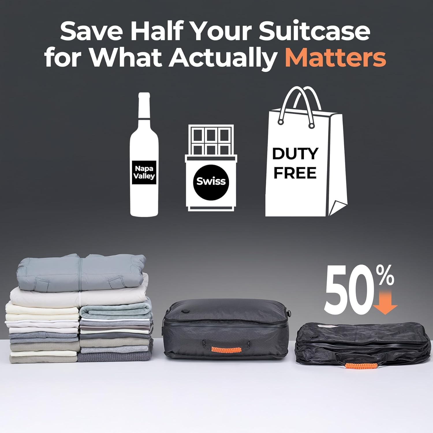 【Upgraded Vacuum Kit】Upgraded vacuum system ensure 5KPa suction (42% stronger vs. market 3.5KPa vacuum pump) slashes bulk by 50% at least. 2400mAh battery fuels 40 full compressions by one charge. Highly portable and convenient for travel storage.