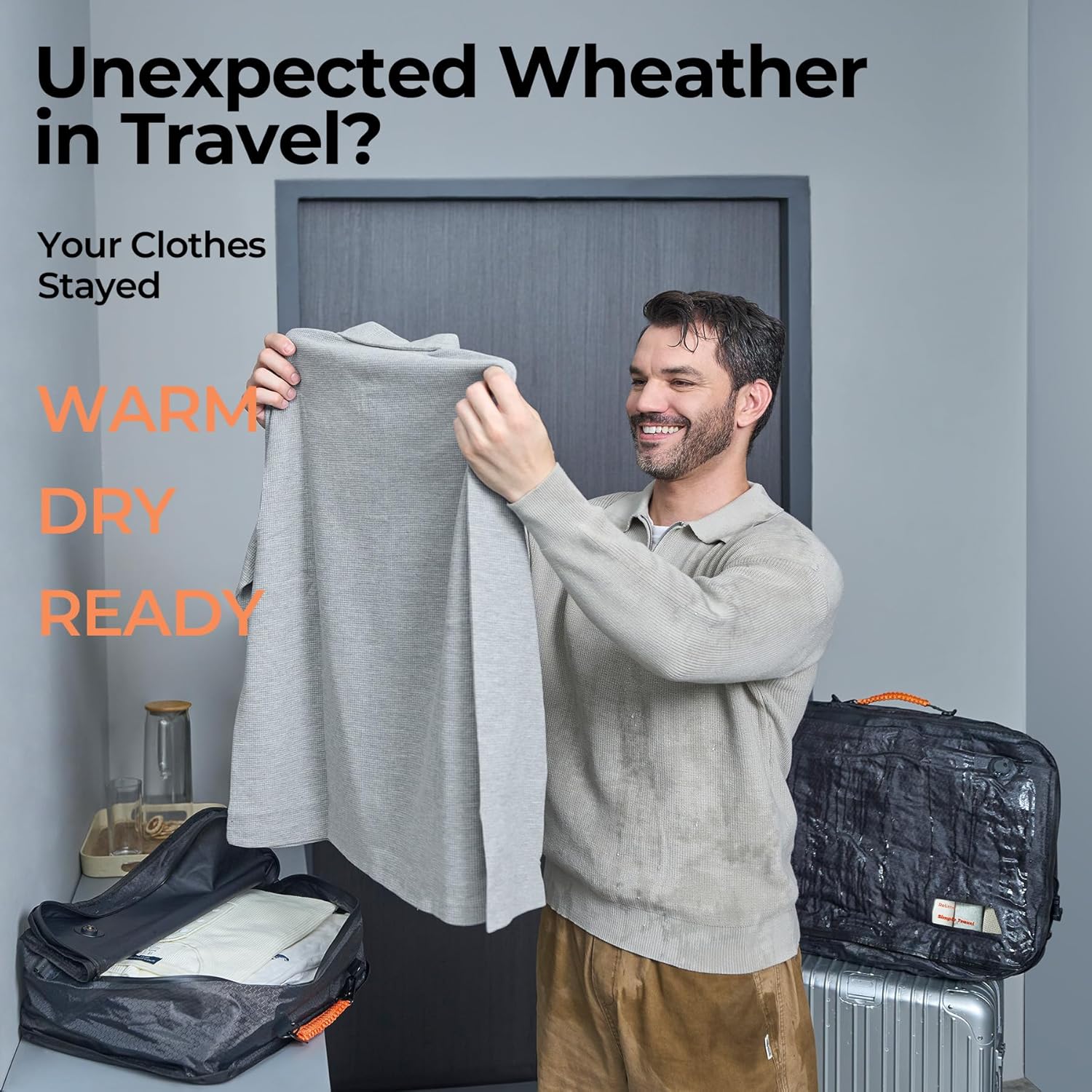 【 Closet-on-the-Go 】 Wide-access zipper 34″(100% Wider vs. market 18″ travel vacuum bags opening) swallows down jacket whole and easy to find the exact cloth that you need. See-through window spots target clothes in 3 secs – No more unpacking avalanches!