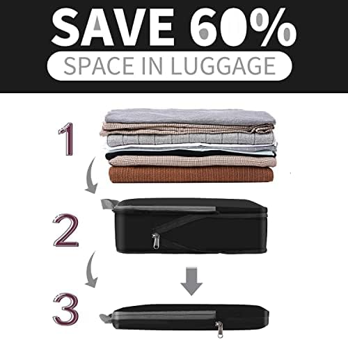 HOW TO MAKE THE COMPRESSION HAPPEN? – There Is a Extra Zipper Outside Of Our Compression Packing Cubes Which Can Be Zipped Up To Flatten The Cubes And Save The Space As Far As Possible. It Just Works Like a Vacuum Sealer. You Just Need To :1) Fold Your Clothes And Flatten Them 2)Pack Clothes In The Cubes And Zip The Normal Zipper. 3)Put A Finger On The Back Of The Zipper In The Space When Compressing The Packing Cubes In Case The Zipper Get Stuck In Fabric.