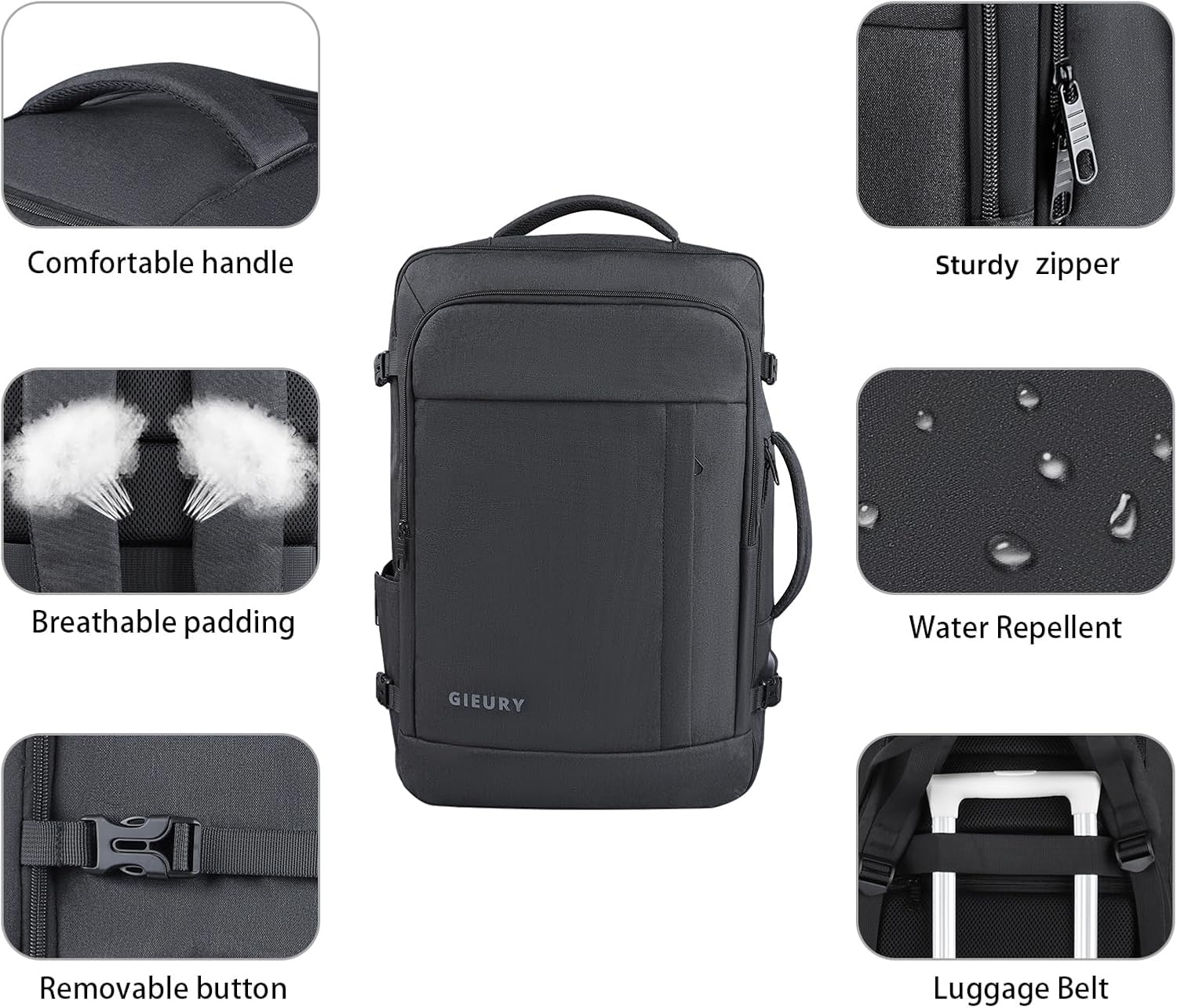 Expandable & Extra Large Capacity:This 50L carry on backpack with expandable design offers you more capacity for packing. Unzipping to get 50L storage, then can easily accommodate clothing, shoes, and travel essentials, etc. It fits overhead and under seat while on state of standard carry on size, is an ideal choice for men, women, weekend traveler, or occasional vacationer. This versatile carry on backpack also meets airline carry-on requirements, for airlines such as Spirit, Jet Blue, etc.