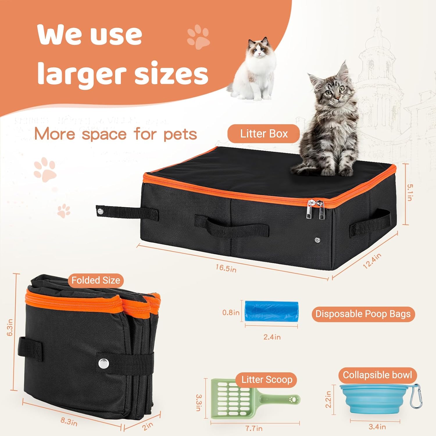 EASY CLEAN LITTER BOX: the travel litter box’s internal waterproof material clean only needs to wipe, the outer material is dirt-resistant and support machine washable,we recommended to use biodegradable bags as a conventional liner, just dispose of it each day, no dirty work