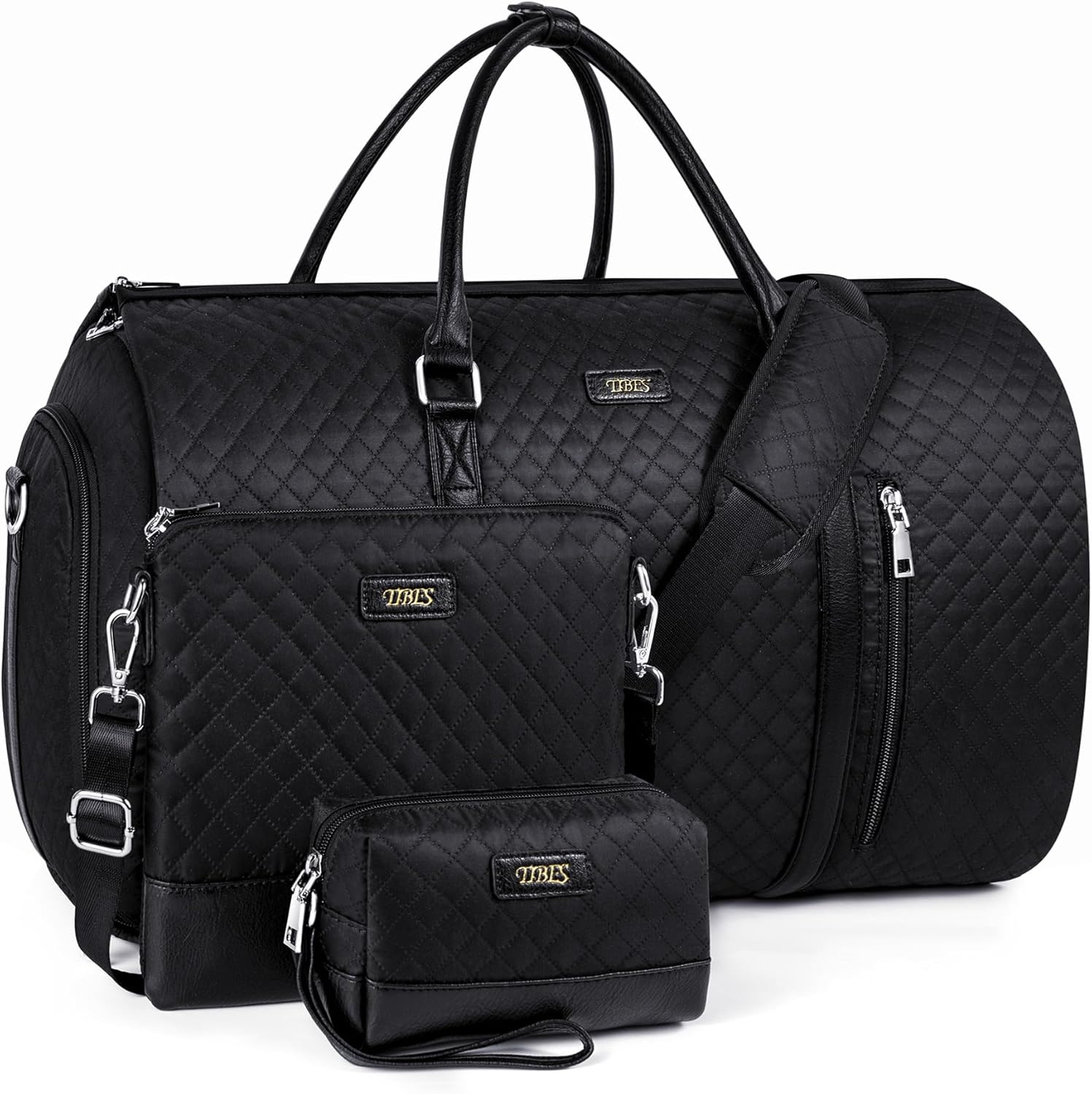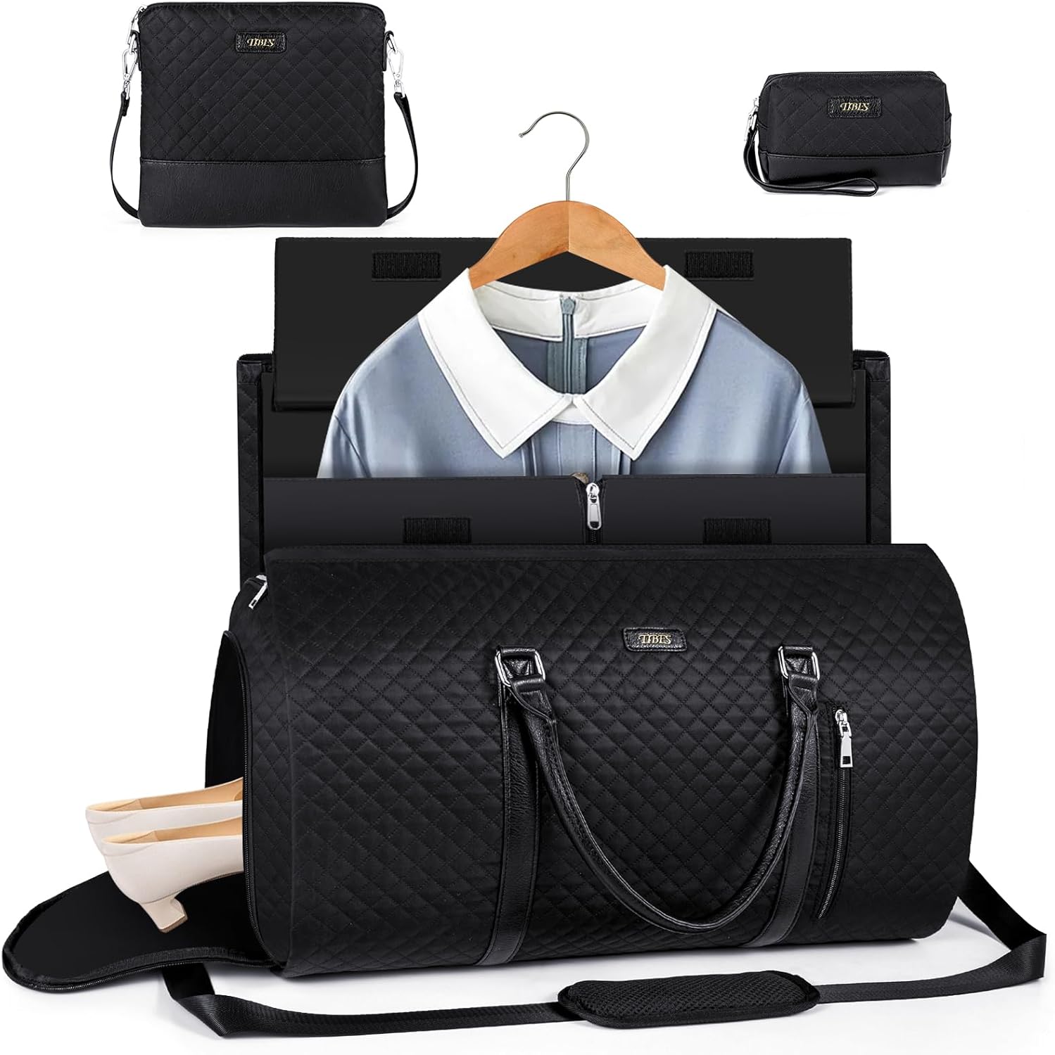 4pcs Garment Bag: Experience the ultimate travel solution with our 4-piece convertible set. This all-in-one system includes a large carry-on duffel (21″L x 11.5″W x 13″H) for formal wear, a versatile messenger bag (10″L x 9″H) for daily essentials, a compact toiletry bag (7″L x 4.5″H), and a spacious drawstring laundry bag. Perfect for business trips, weekends, weddings, and extended vacations, it organizes everything you need in one sleek package.