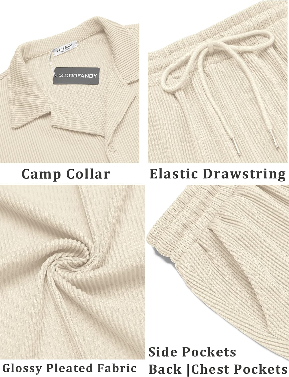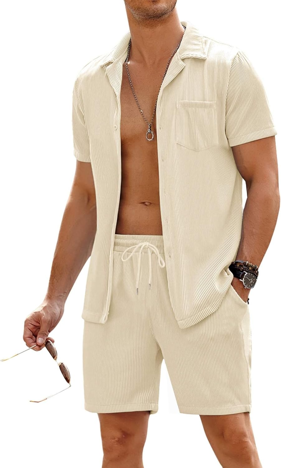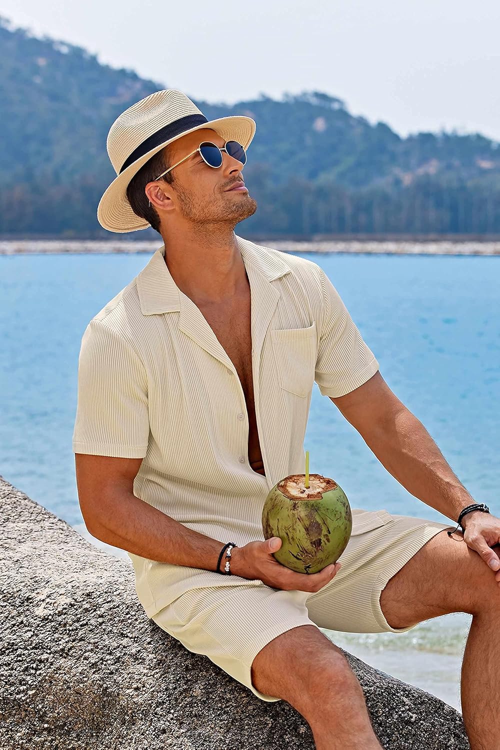 COOFANDY Men’s 2 Piece Beach Outfit Casual Button Down Shirt Summer Shorts Sets