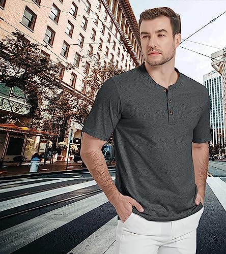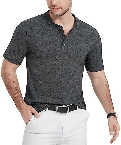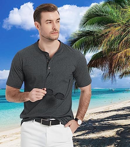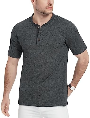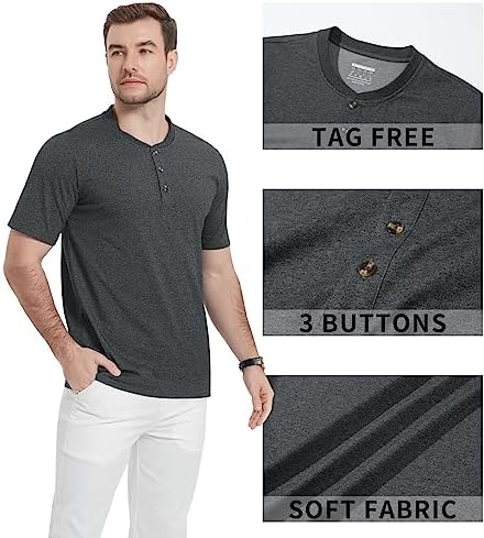 Classic Henley Shirts: Henry’s three-button open front placket and collarless neckline make the shirt more breathable, making it not only comfortable and cool to wear in the summer, but also having a stylish and casual look.