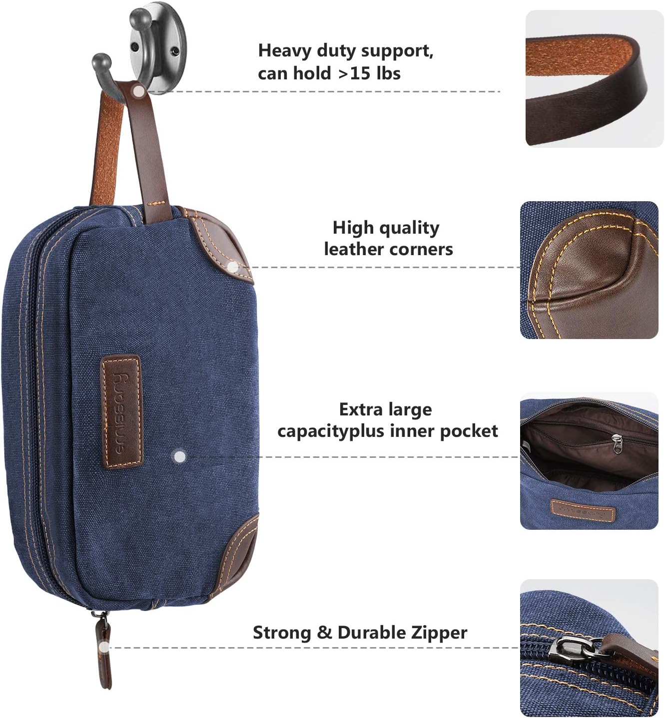 HIGH-QUALITY DURABLE MATERIAL: This exceptional toiletry travel bag by emissary is made of canvas and PU leather, which is known for its lightweight yet durable qualities, the perfect combination for traveling. This specific material is water resistant, making it safe for use in environments where it may become wet. Making this the perfect bathroom bag, shaving bag, and travel dopp kit.