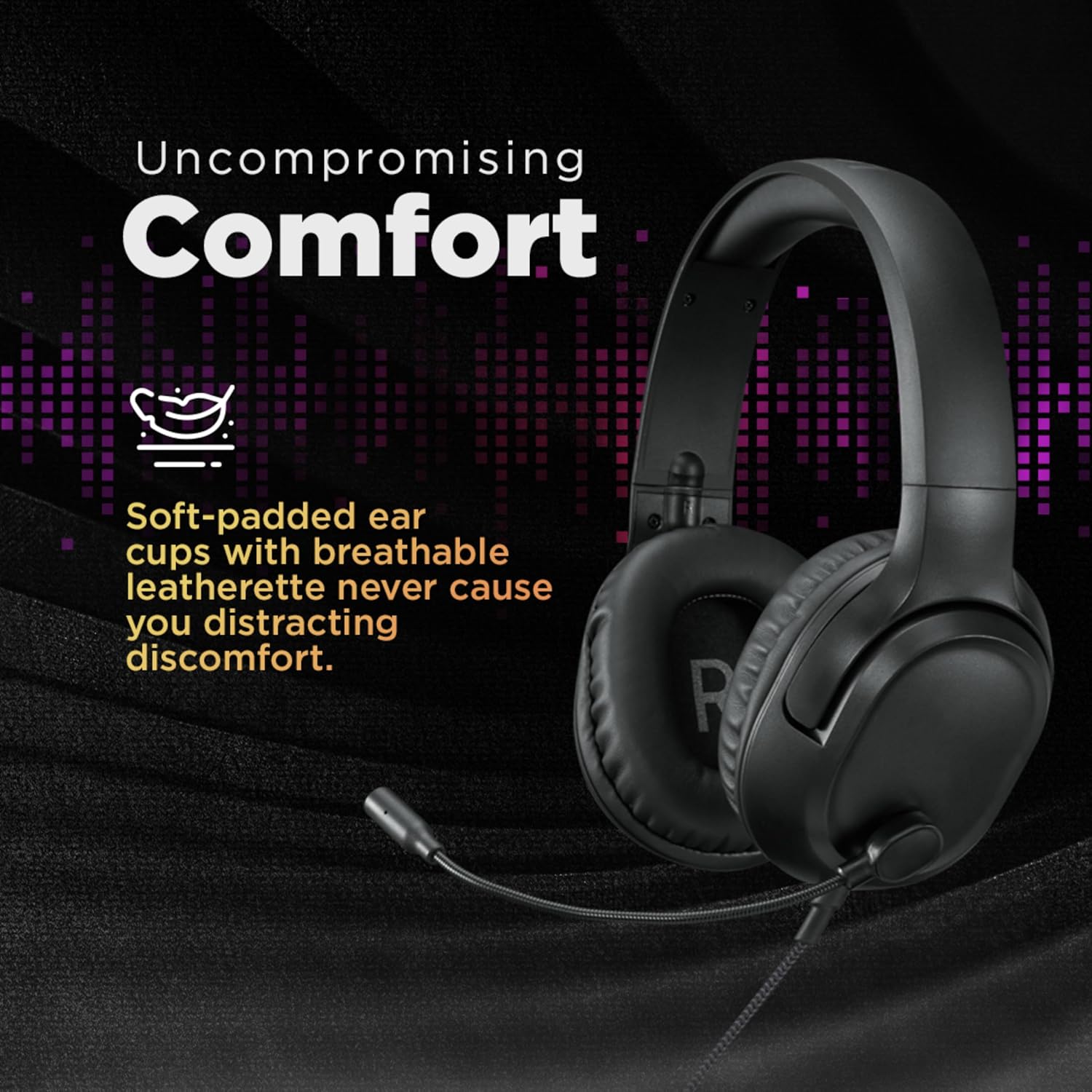 The soft foam ear cups are encased in breathable synthetic leather for uncompromising comfort so you don’t have to freeze even during marathon gaming sessions.