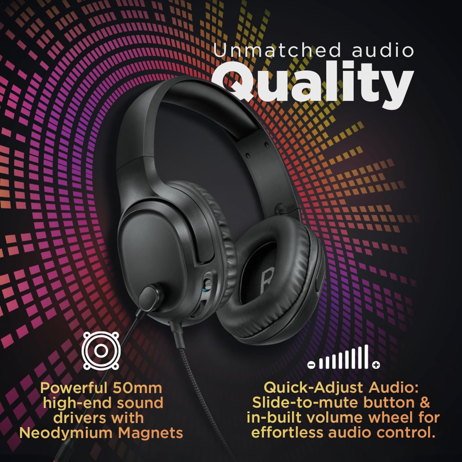 Unmatched audio quality: Immerse yourself in the details with high-end 50mm diameter drivers that deliver rich, realistic sound. The professionally tuned speakers can be controlled directly with the built-in volume control.