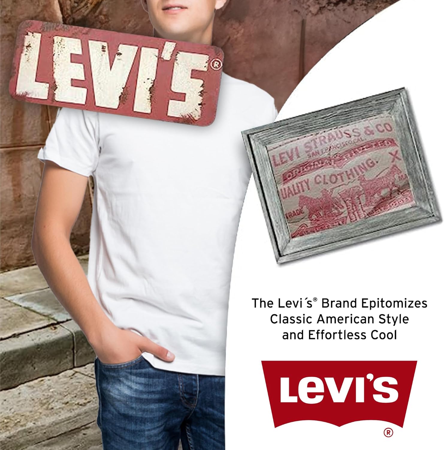 Levi's logo white on red background with brand phraseLevi's logo white on red background with brand phrase