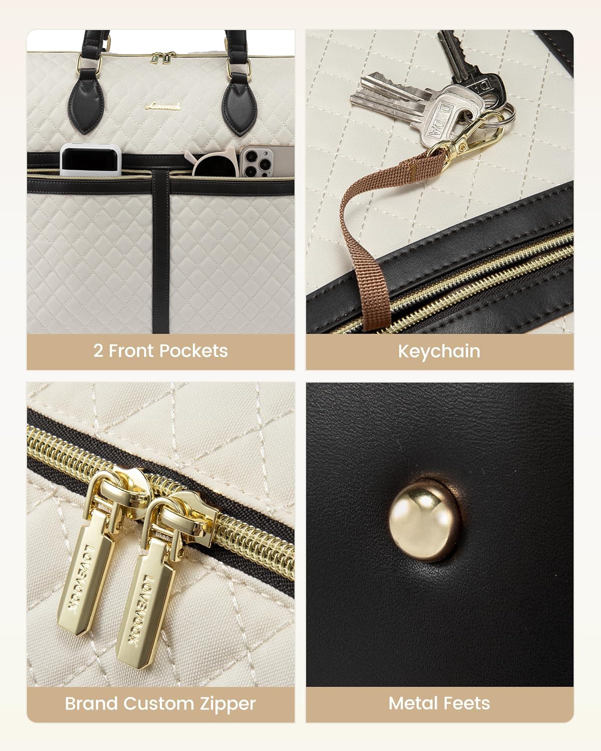 【CARRY ON BAG FOR AIRPLANES】Designed to meet most international carry-on standards (18.5 x 14 x 9 inches, 38L), our travel carry on bag for women fits effortlessly into overhead compartments and under seats. The high-strength hardware, custom LOVEVOOK branded zippers, detachable padded shoulder strap (up to 48 inches), and leather dual handles ensure you travel in both style and comfort. The travel duffel bag for women even includes 5 metal feet for enhanced durability.