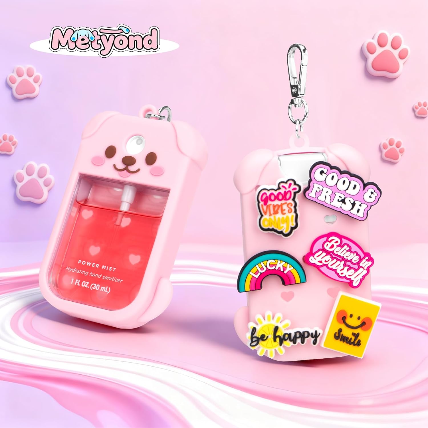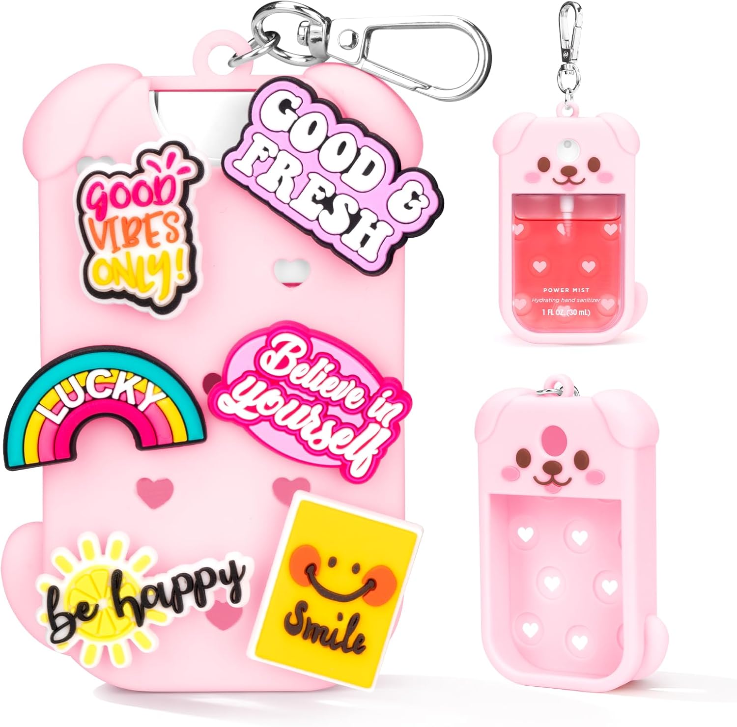 【Compatible Touchland Hand Sanitizer Spray Case】The package includes 1 Dog-shaped case, 1 keychain, and 6 stylish charms, allowing you to customize your look daily. (only fit for touchland 30ml ver)