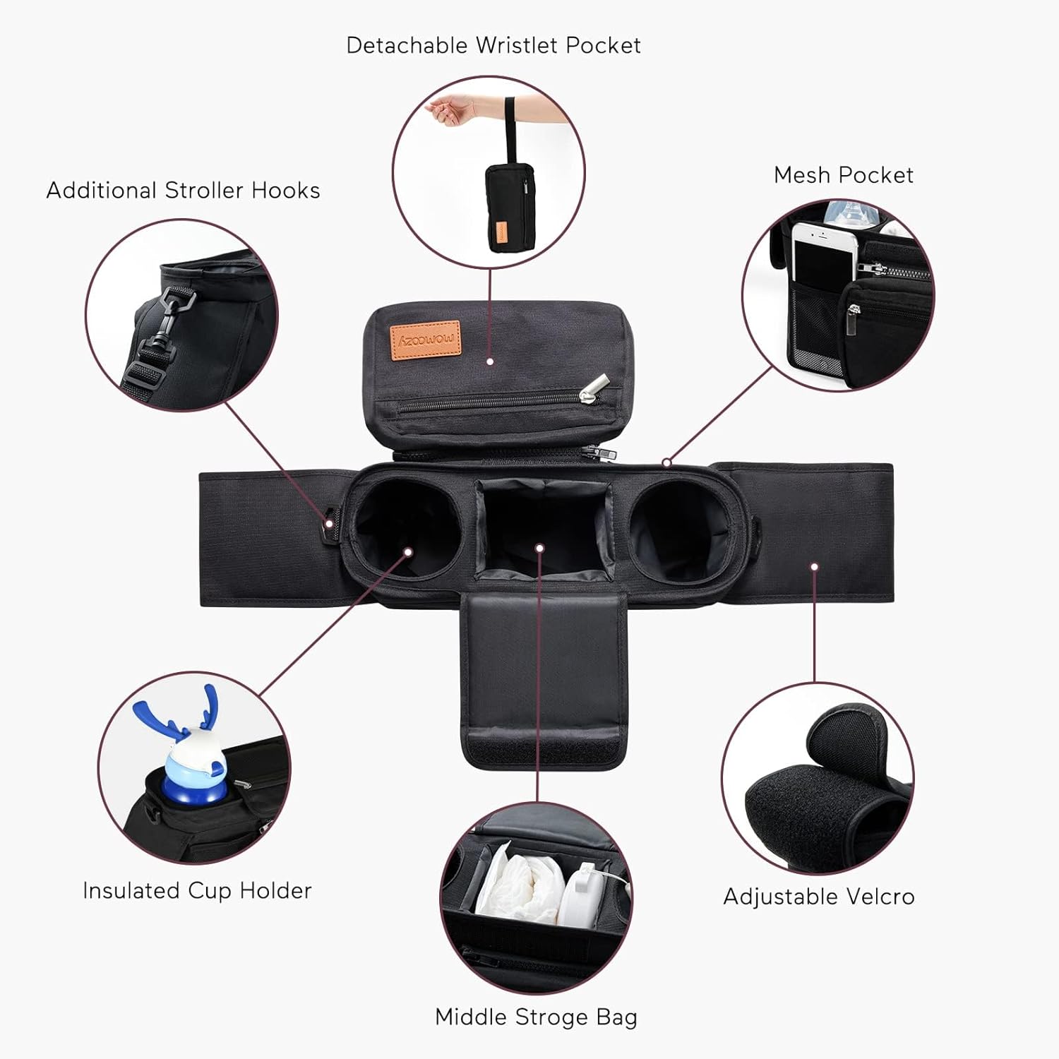 [Versatile Bag] With a detachable wristlet pocket to take your most needed items with you. You can also remove the entire organizer from the stroller and wear it over your shoulder using the included straps.