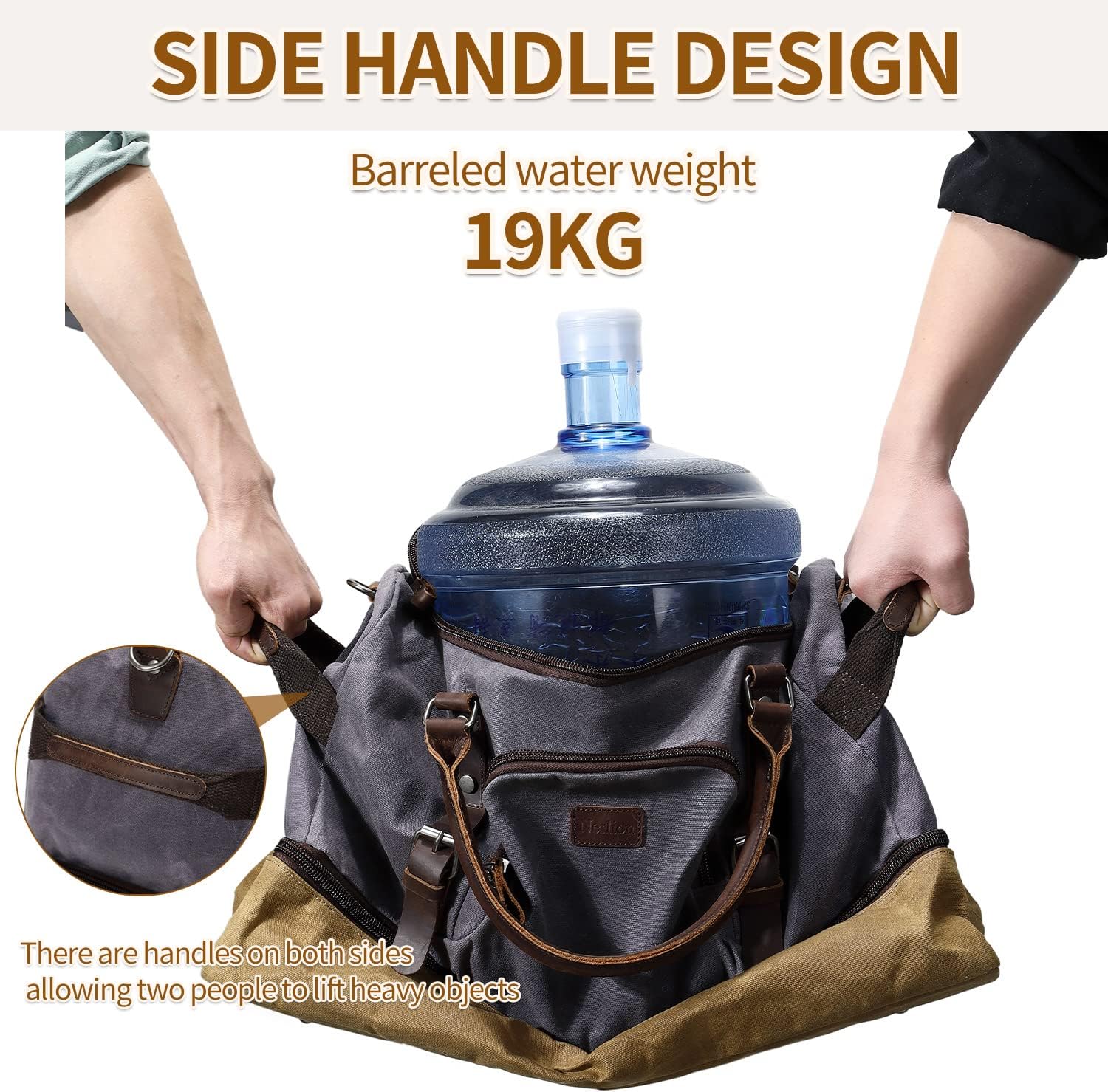 Quality Material: This weekender bag is made of waterproof durable waxed canvas and top quality genuine leather, it is durable in use and rich in looks, handcrafted by skilled craftsmen. 100% quality inspected before they are delivered to you