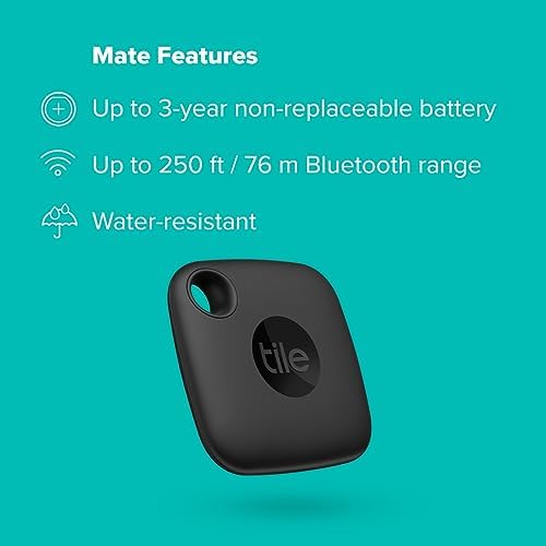 Easily attach Tile Mate to keys, backpacks and anything else you need to keep track of regularly. Water-resistant with an up to 250 ft Bluetooth range, loud ring and up to 3-year battery. Just open the free Tile app and tap Find to locate your stuff. You can also double press the button on your Tile to ring and find your phone. Stick Lost and Found Labels to your favorite items like tablets, lunchboxes, water bottles, and more. Use our free app to activate each Label. If anything gets lost, your return details can be accessed by scanning the QR code on the Label. Includes 1x Tile Mate Black, 1 x sheet of Tile Lost and Found Labels.