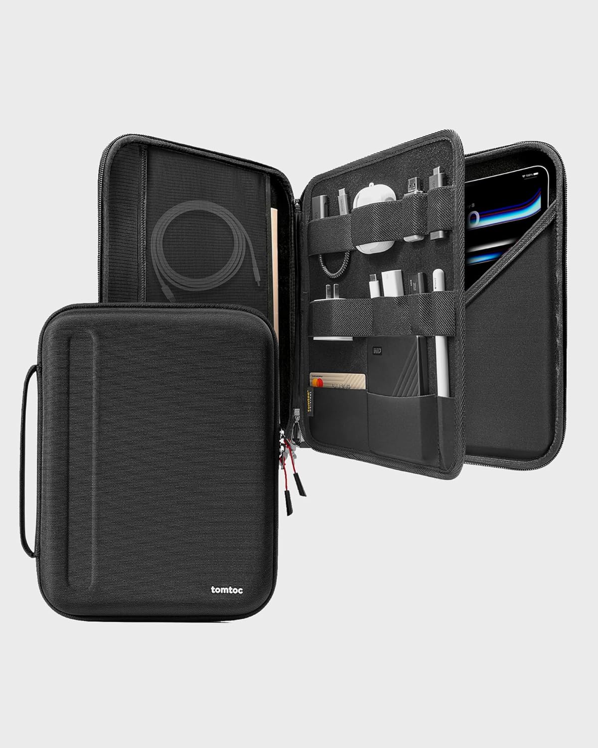 Carry iPad & Accessories Together: Triple-layer design gives a reasonable storage. iPad compartment is big enough for storing iPad Pro with magic keyboard, while extra mesh pockets and elasticized segments provide the best flexibility for iPad pencil pro, Air Pods Pro, USB cord, SD cards, electrical adapters, and more