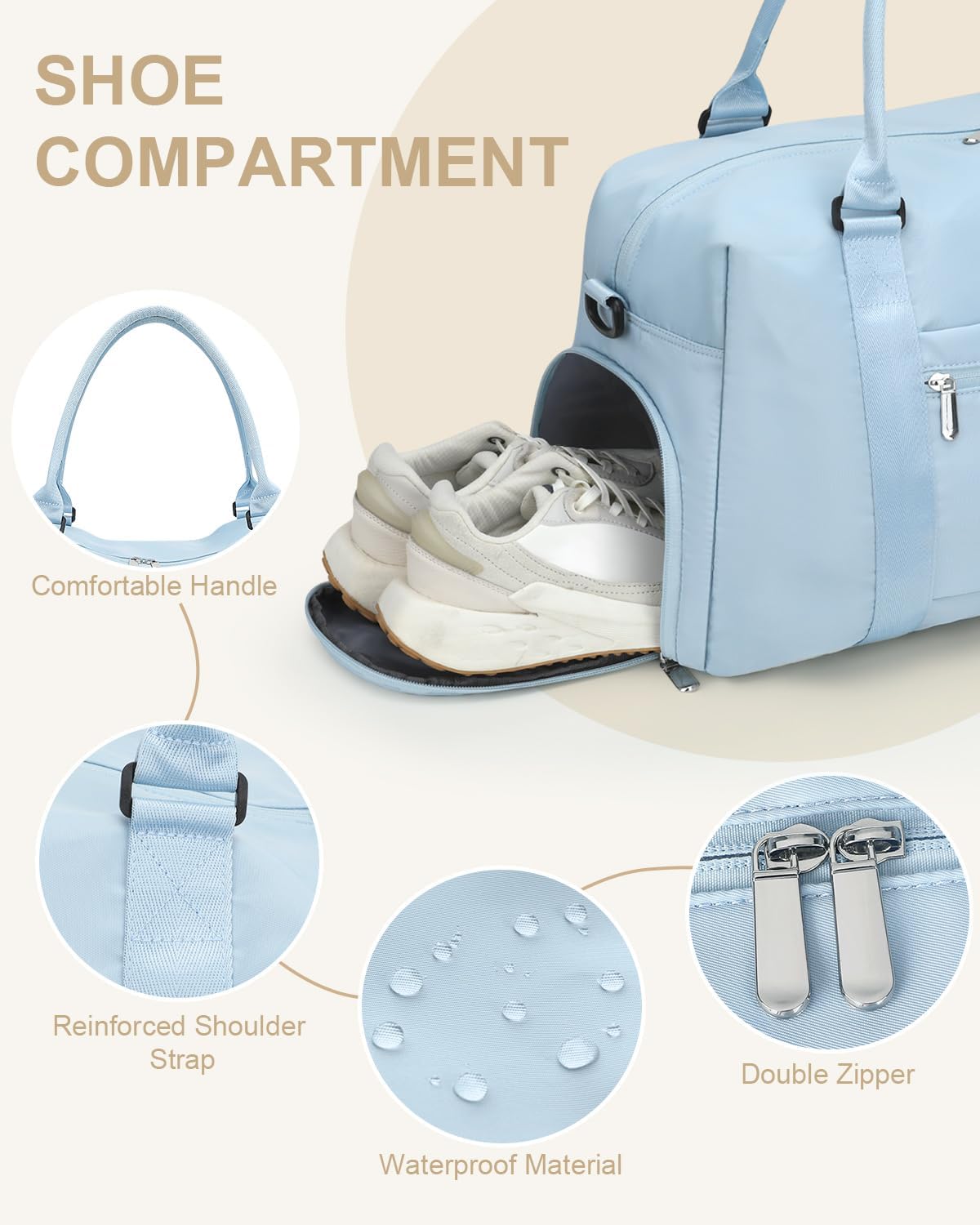 Thoughtful Detail Design: Unlike ordinary bags, this travel duffle bag features a dedicated shoe compartment that separates footwear from other items, ensuring things stay clean and organized. The side zippered pocket is perfect for keeping small essentials like hairspray or moisturizer easily accessible Whether you need a dance bag, a gym bag for women, or an overnight bag, this bag has all the storage you need