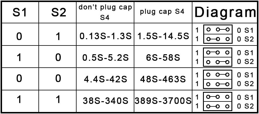 Functions: Supports on delay and off delay modes, the delay time can be adjusted from 0.1s to 1h, the delay mode and delay time can be set by shorting or opening the jumper pins and rotating the potentiometer.